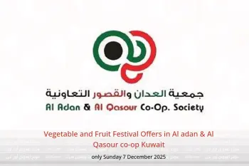 Al adan & Al Qasour co-op Kuwait announces new discounts titled « Vegetable and Fruit Festival Offers » available until 7 December 2025, new offers and prices only in Kuwait.