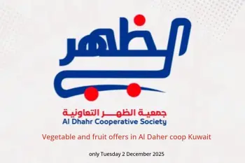 Al Daher coop Kuwait announces new discounts titled « Vegetable and fruit offers » available until 2 December 2025, new offers and prices only in Kuwait.