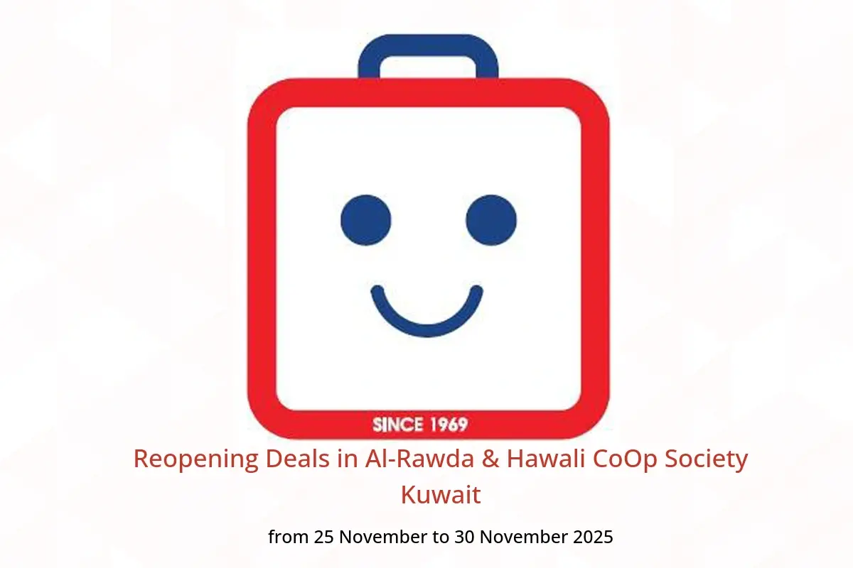 Al-Rawda & Hawali CoOp Society Kuwait announces new discounts titled « Reopening Deals » available until 30 November 2025, new offers and prices only in Kuwait.