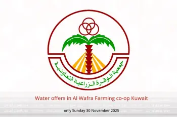 Al Wafra Farming co-op Kuwait announces new discounts titled « Water offers » available until 30 November 2025, new offers and prices only in Kuwait.