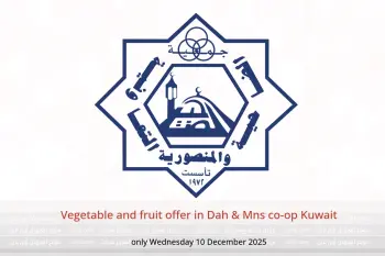Dah & Mns co-op Kuwait announces new discounts titled « Vegetable and fruit offer » available until 10 December 2025, new offers and prices only in Kuwait.