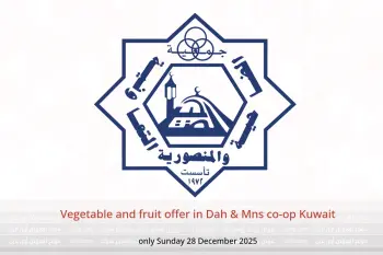 Pictures and prices for Vegetable and fruit offer in Dah & Mns co-op Kuwait and All images shown here are for illustrative purposes only and what is shown here may differ from the actual products And available from Sunday, 28 December 2025 to Sunday, 28 December 2025.from i L O F O . C O M.