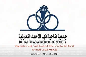 Dahiat Fahd Ahmed co-op Kuwait announces new discounts titled « Vegetable and Fruit Festival Offers » available until 9 December 2025, new offers and prices only in Kuwait.
