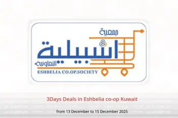 Eshbelia co-op Kuwait announces new discounts titled « 3Days Deals » available until 15 December 2025, new offers and prices only in Kuwait.