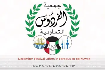 Ferdous co-op Kuwait announces new discounts titled « December Festival Offers » available until 23 December 2025, new offers and prices only in Kuwait.