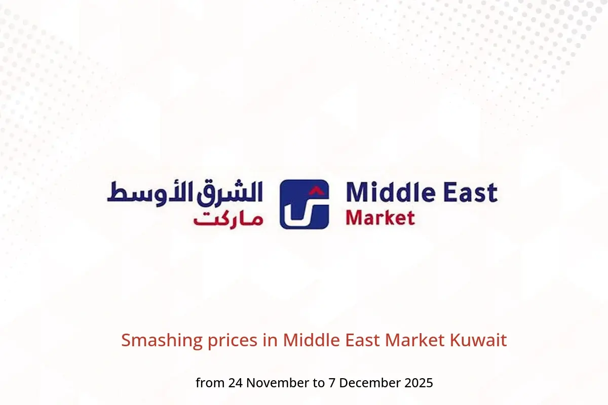 Middle East Market Kuwait announces new discounts titled « Smashing prices » available until 7 December 2025, new offers and prices only in Kuwait.