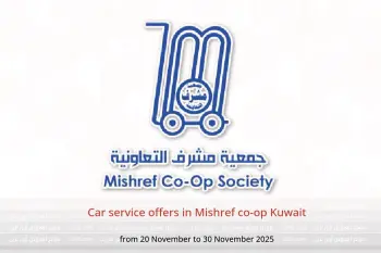 Mishref co-op Kuwait announces new discounts titled « Car service offers » available until 30 November 2025, new offers and prices only in Kuwait.