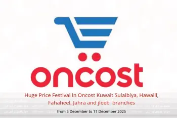 Oncost Kuwait in Sulaibiya, Hawalli, Fahaheel, Jahra and jleeb branches announces new discounts titled « Huge Price Festival » available until 11 December 2025, new offers and prices only in Kuwait.