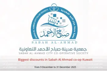 Sabah Al Ahmad co-op Kuwait announces new discounts titled « Biggest discounts » available until 31 December 2025, new offers and prices only in Kuwait.