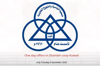 Shamieh coop Kuwait announces new discounts titled « One day offers » available until 9 December 2025, new offers and prices only in Kuwait.