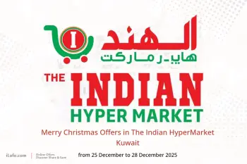 Pictures and prices for Merry Christmas Offers in The Indian HyperMarket Kuwait and All images shown here are for illustrative purposes only and what is shown here may differ from the actual products And available from Thursday, 25 December 2025 to Sunday, 28 December 2025.from i L O F O . C O M.