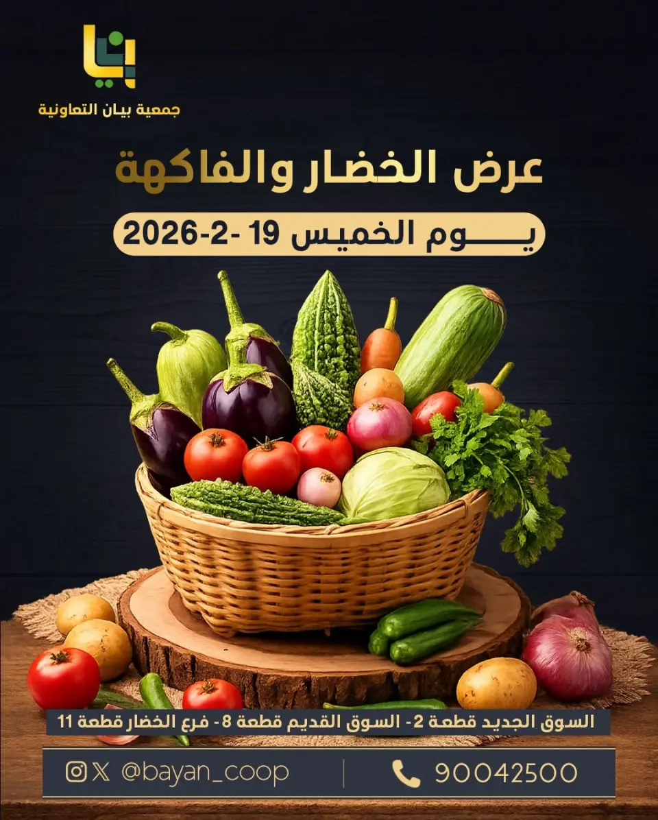 Descubre las últimas ofertas de Bayan cooperativo en Kuwait hoy . Consulta el catálogo Oferta de frutas y verduras, disponible hasta 19 febrero 2026.