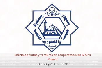cooperativa Dah & Mns Kuwait anuncia nuevos descuentos titulados « Oferta de frutas y verduras » disponibles hasta el día 7 diciembre 2025, nuevas ofertas y precios sólo en Kuwait.