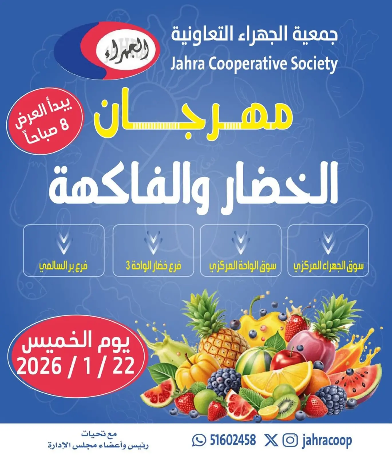 Descubre las últimas ofertas de cooperativa Jahra en Kuwait hoy . Consulta el catálogo Ofertas del Festival de Frutas y Verduras, disponible hasta 22 enero 2026.