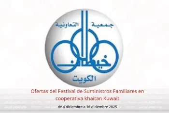 cooperativa khaitan Kuwait anuncia nuevos descuentos titulados « Ofertas del Festival de Suministros Familiares » disponibles hasta el día 16 diciembre 2025, nuevas ofertas y precios sólo en Kuwait.
