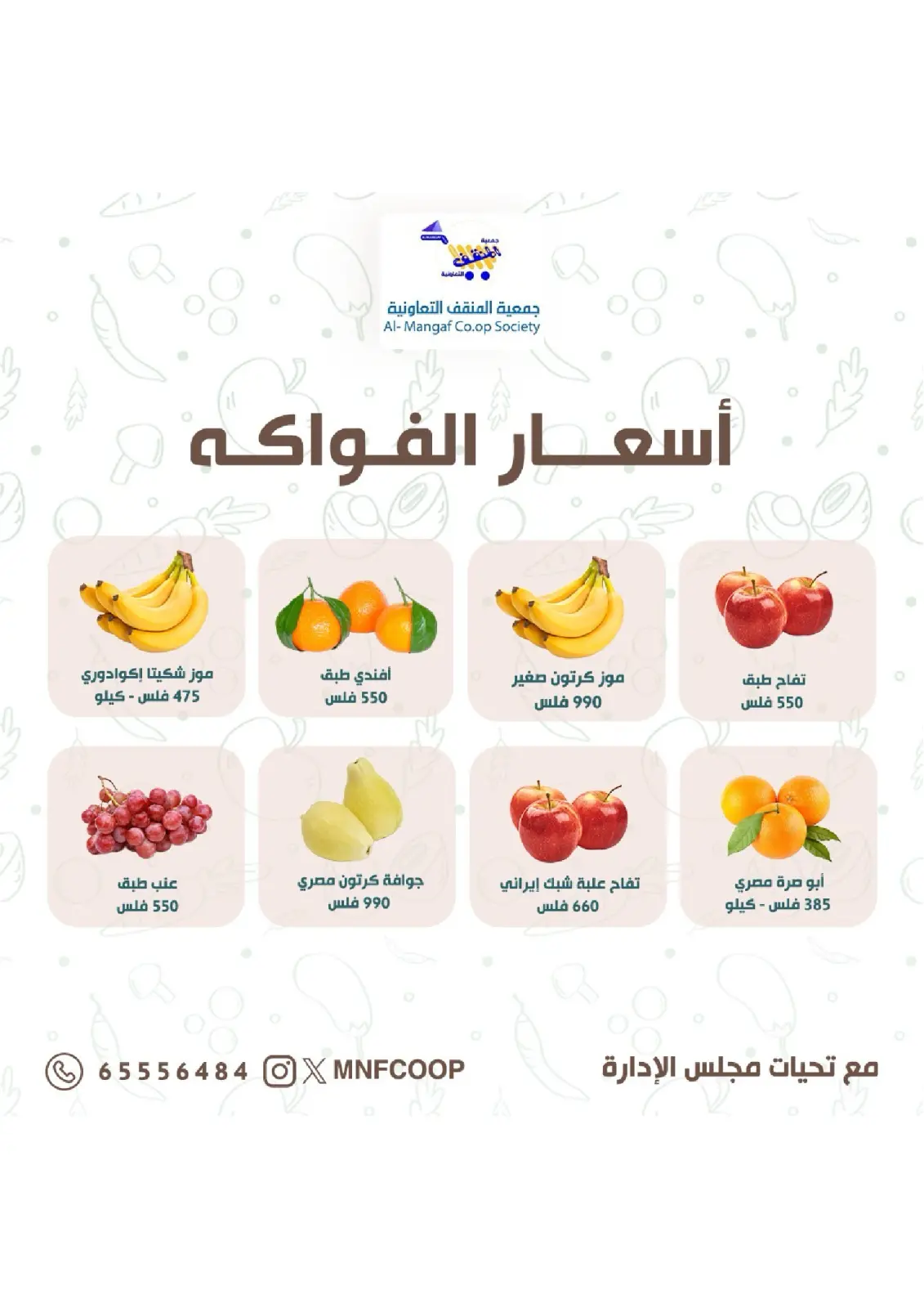 Aviso: Fotos y precios de Ofertas de frutas y verduras en cooperativa MNF Kuwait Mostrados en este catálogo solo con fines ilustrativos y sujetos a disponibilidad en las tiendas durante el período de la promoción.