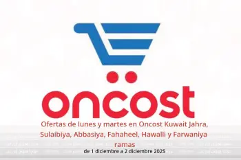 Ofertas de lunes y martes en Oncost Sulaibiya, Hawalli, Fahaheel, Abbasiya, Farwaniya y Jahra de 1 a 2 diciembre