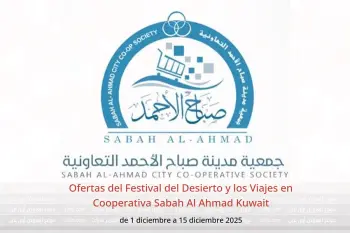Cooperativa Sabah Al Ahmad Kuwait anuncia nuevos descuentos titulados « Ofertas del Festival del Desierto y los Viajes » disponibles hasta el día 15 diciembre 2025, nuevas ofertas y precios sólo en Kuwait.