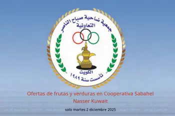 Cooperativa Sabahel Nasser Kuwait anuncia nuevos descuentos titulados « Ofertas de frutas y verduras » disponibles hasta el día 2 diciembre 2025, nuevas ofertas y precios sólo en Kuwait.