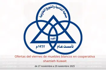 cooperativa shamieh Kuwait anuncia nuevos descuentos titulados « Ofertas del viernes de muebles blancos » disponibles hasta el día 29 noviembre 2025, nuevas ofertas y precios sólo en Kuwait.