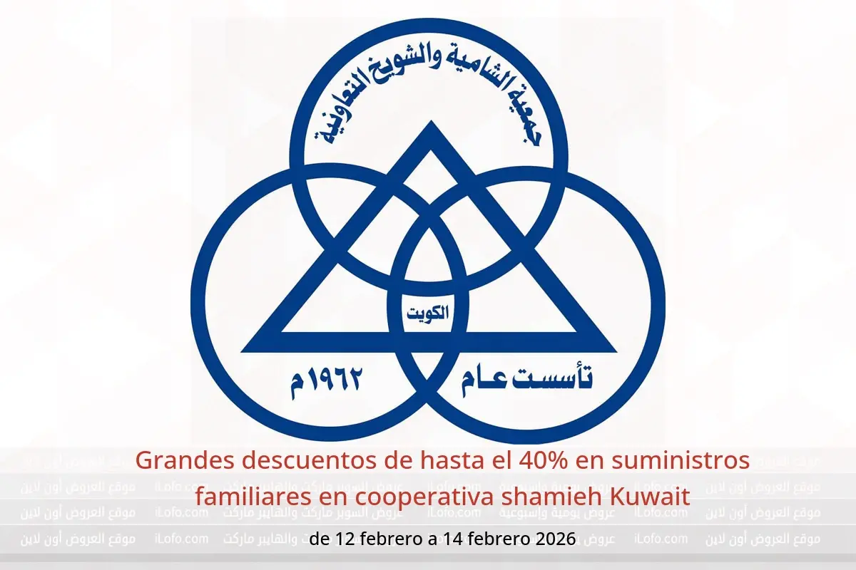 Ofertas de cooperativa shamieh Kuwait de 12 a 14 febrero 2026 Grandes descuentos de hasta el 40% en suministros familiares