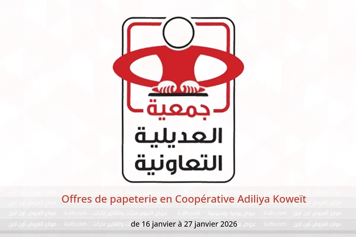 Découvrez les dernières offres Coopérative Adiliya en Koweït aujourd’hui . Consultez le catalogue Offres de papeterie, disponible jusqu’au 27 janvier 2026.