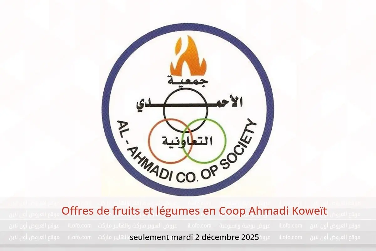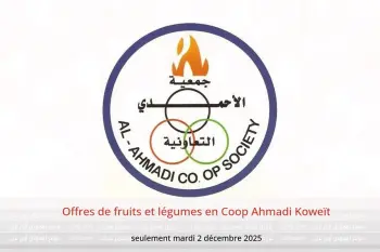 Coop Ahmadi Koweït annonce de nouvelles réductions intitulées « Offres de fruits et légumes » disponibles jusqu'au 2 décembre 2025, de nouvelles offres et prix uniquement en Koweït.