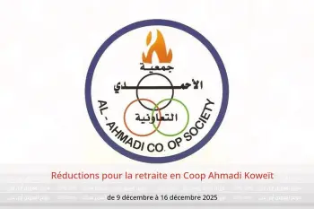 Coop Ahmadi Koweït annonce de nouvelles réductions intitulées « Réductions pour la retraite » disponibles jusqu'au 16 décembre 2025, de nouvelles offres et prix uniquement en Koweït.