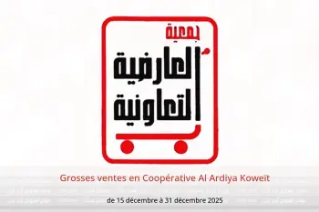 Coopérative Al Ardiya Koweït annonce de nouvelles réductions intitulées « Grosses ventes » disponibles jusqu'au 31 décembre 2025, de nouvelles offres et prix uniquement en Koweït.