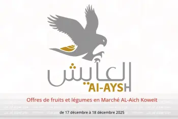 Marché AL-Aich Koweït annonce de nouvelles réductions intitulées « Offres de fruits et légumes » disponibles jusqu'au 18 décembre 2025, de nouvelles offres et prix uniquement en Koweït.