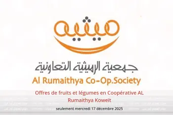 Coopérative AL Rumaithya Koweït annonce de nouvelles réductions intitulées « Offres de fruits et légumes » disponibles jusqu'au 17 décembre 2025, de nouvelles offres et prix uniquement en Koweït.