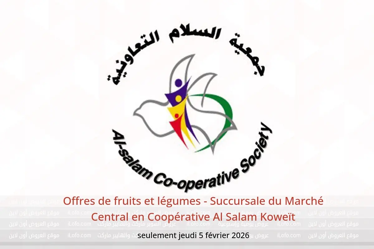 Découvrez les dernières offres Coopérative Al Salam en Koweït aujourd’hui . Consultez le catalogue Offres de fruits et légumes - Succursale du Marché Central, disponible jusqu’au 5 février 2026.