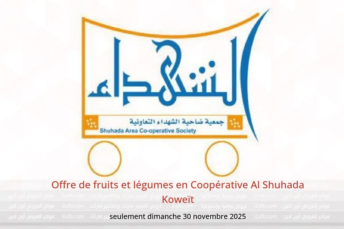 Coopérative Al Shuhada Koweït annonce de nouvelles réductions intitulées « Offre de fruits et légumes » disponibles jusqu'au 30 novembre 2025, de nouvelles offres et prix uniquement en Koweït.