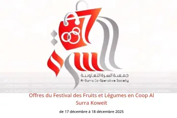 Coop Al Surra Koweït annonce de nouvelles réductions intitulées « Offres du Festival des Fruits et Légumes » disponibles jusqu'au 18 décembre 2025, de nouvelles offres et prix uniquement en Koweït.