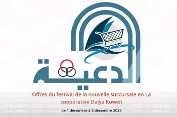 La coopérative Daiya Koweït annonce de nouvelles réductions intitulées « Offres du festival de la nouvelle succursale » disponibles jusqu'au 3 décembre 2025, de nouvelles offres et prix uniquement en Koweït.