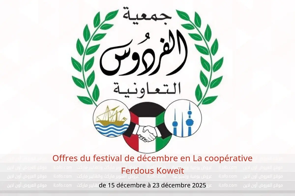 La coopérative Ferdous Koweït annonce de nouvelles réductions intitulées « Offres du festival de décembre » disponibles jusqu'au 23 décembre 2025, de nouvelles offres et prix uniquement en Koweït.