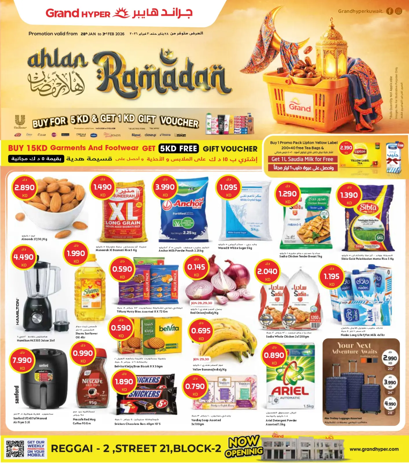 Offres Grand hypermarché Koweït de 28 janvier à 3 février 2026 Offres de Bienvenue Ramadan - Succursale Reggai