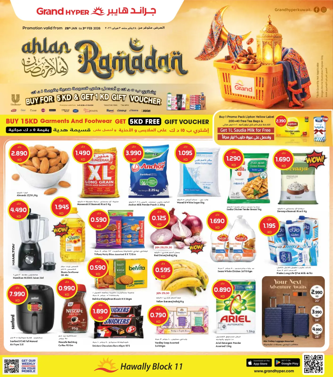 Avertissement: Photos et prix pour Offres Grand hypermarché Koweït Hawalli branches Offres de Bienvenue Ramadan Présentés dans ce catalogue à titre indicatif uniquement et soumis à la disponibilité dans les magasins pendant la période de l’offre.
