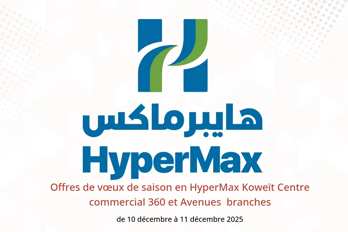 HyperMax Koweït dans les branches Centre commercial 360 et Avenues annonce de nouvelles réductions intitulées « Offres de vœux de saison » disponibles jusqu'au 11 décembre 2025, de nouvelles offres et prix uniquement en Koweït.