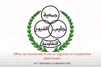 Coopérative Jleeb Koweït annonce de nouvelles réductions intitulées « Offres du Festival des Fruits et Légumes » disponibles jusqu'au 12 décembre 2025, de nouvelles offres et prix uniquement en Koweït.
