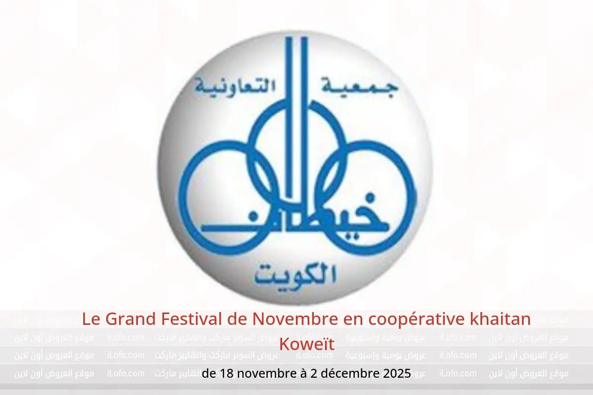 coopérative khaitan Koweït annonce de nouvelles réductions intitulées « Le Grand Festival de Novembre » disponibles jusqu'au 2 décembre 2025, de nouvelles offres et prix uniquement en Koweït.