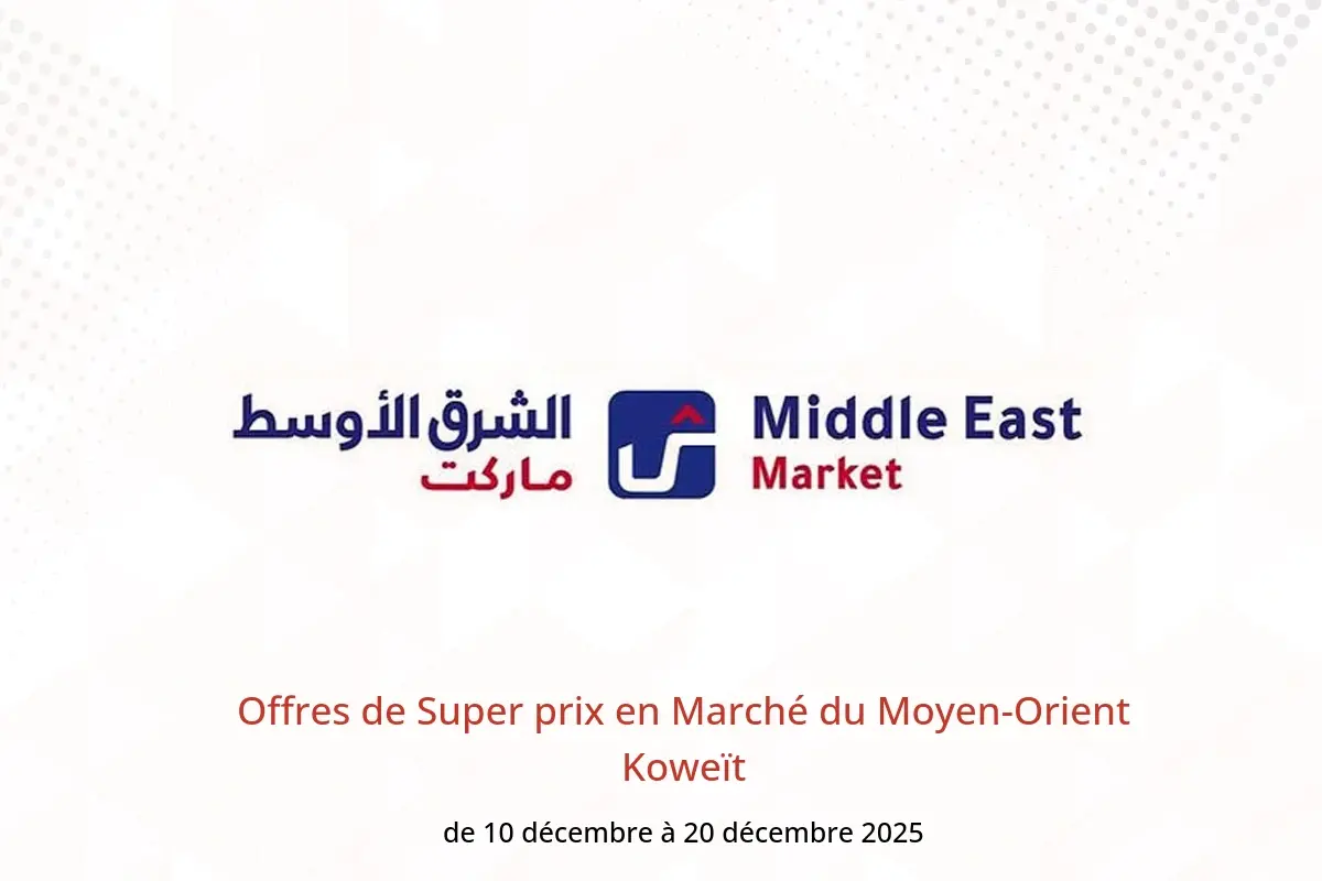 Marché du Moyen-Orient Koweït annonce de nouvelles réductions intitulées « Offres de Super prix » disponibles jusqu'au 20 décembre 2025, de nouvelles offres et prix uniquement en Koweït.