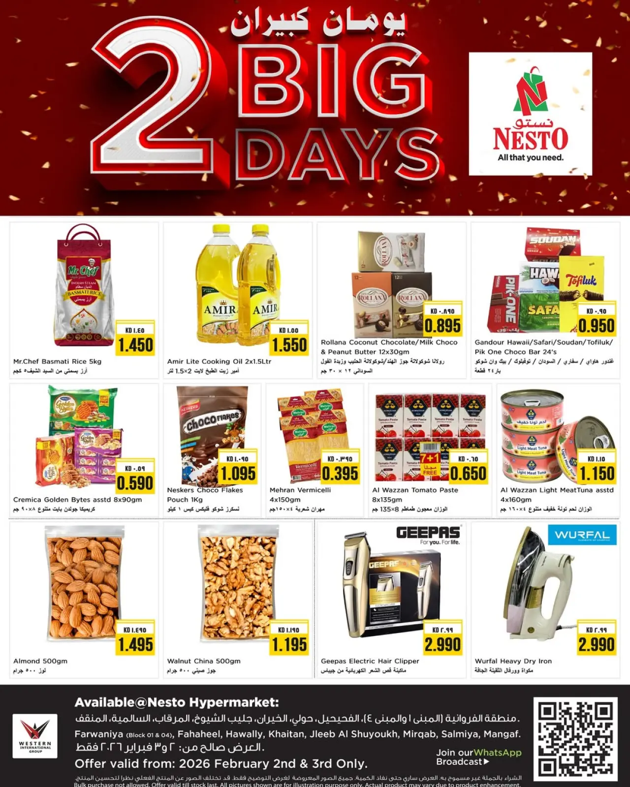 Offres Nesto Hypermarchés Koweït de 2 à 3 février 2026 Offres de deux jours
