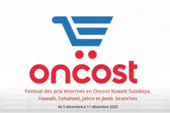 Oncost Koweït dans les branches Sulaibiya, Hawalli, Fahaheel, Jahra et jleeb annonce de nouvelles réductions intitulées « Festival des prix énormes » disponibles jusqu'au 11 décembre 2025, de nouvelles offres et prix uniquement en Koweït.