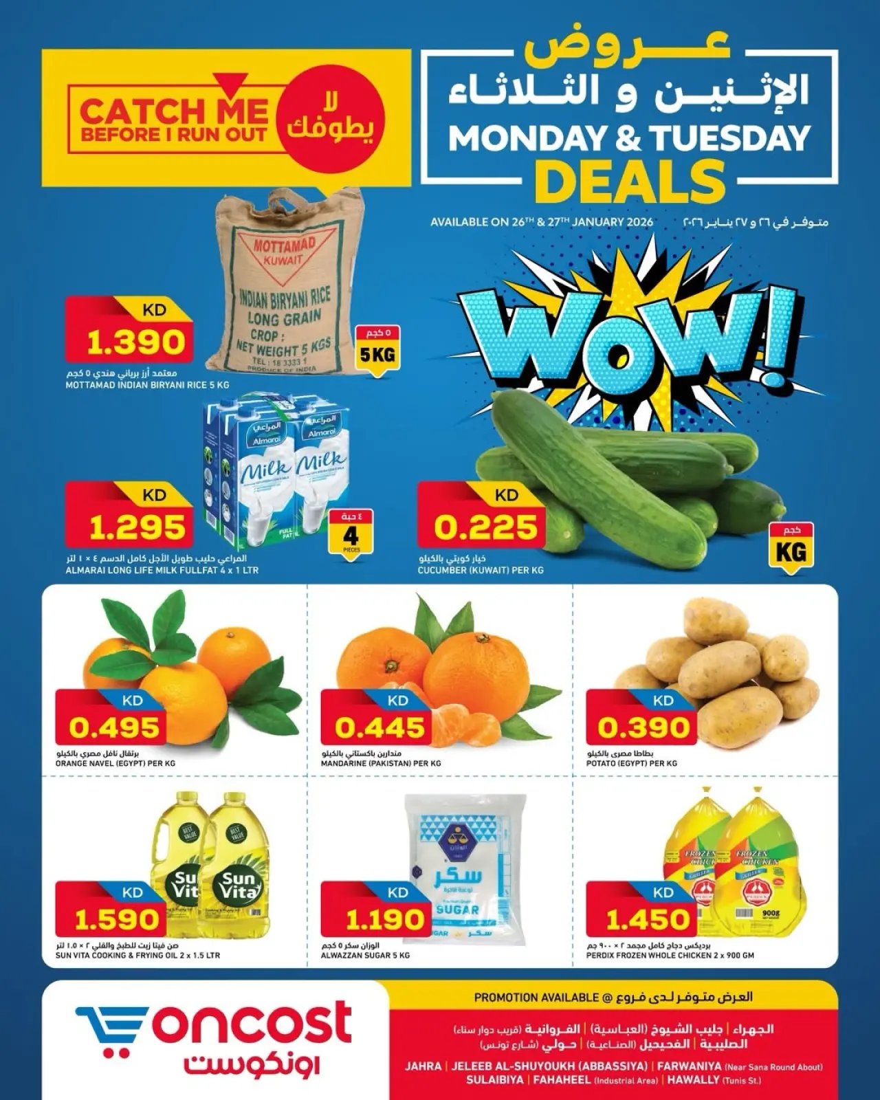 Offres Oncost Sulaibiya, Hawalli, Fahaheel, Abbasiya, Farwaniya et Jahra de 26 à 27 janvier Offres du lundi et du mardi