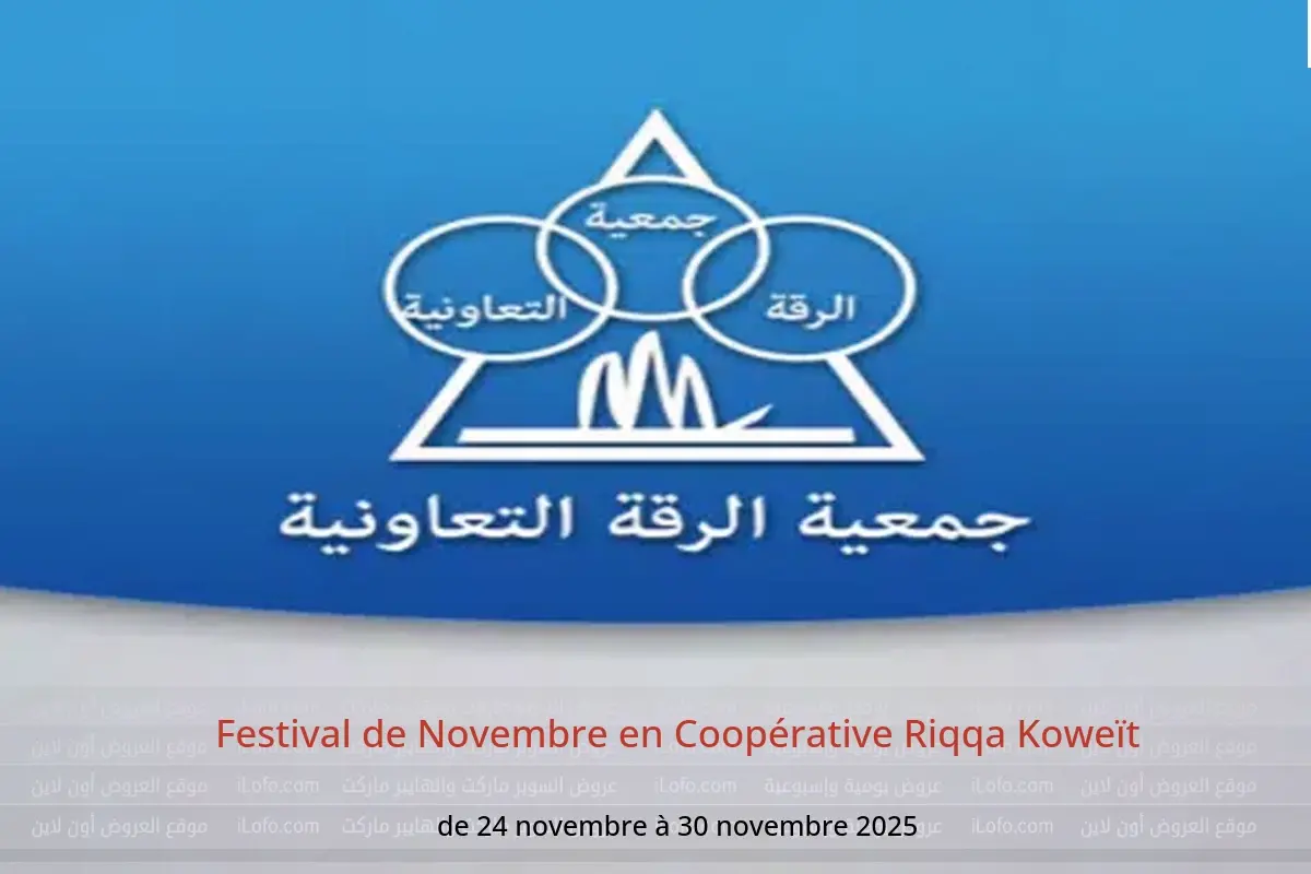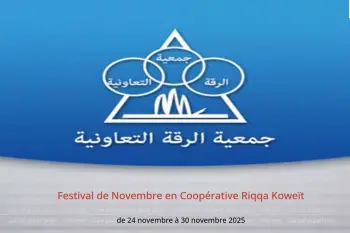 Coopérative Riqqa Koweït annonce de nouvelles réductions intitulées « Festival de Novembre » disponibles jusqu'au 30 novembre 2025, de nouvelles offres et prix uniquement en Koweït.