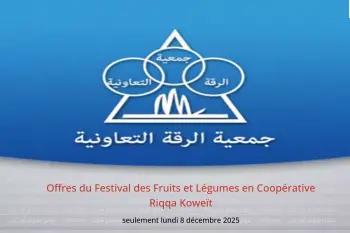 Coopérative Riqqa Koweït annonce de nouvelles réductions intitulées « Offres du Festival des Fruits et Légumes » disponibles jusqu'au 8 décembre 2025, de nouvelles offres et prix uniquement en Koweït.