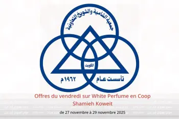 Coop Shamieh Koweït annonce de nouvelles réductions intitulées « Offres du vendredi sur White Perfume » disponibles jusqu'au 29 novembre 2025, de nouvelles offres et prix uniquement en Koweït.