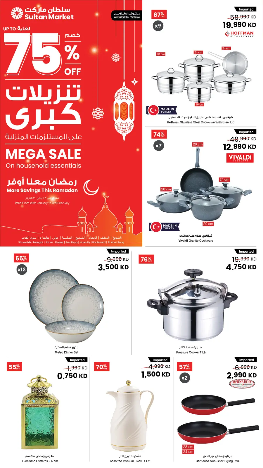 Offres Centre Sultan Koweït de 28 janvier à 3 février 2026 Remises exceptionnelles allant jusqu'à 75 % sur les articles ménagers