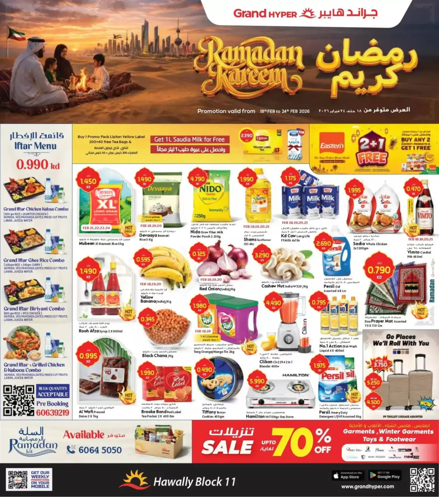 اكتشف أحدث عروض جراند هايبر ماركت في الكويت اليوم بفروع حولي وتصفح كاتالوج عروض رمضان كريم واستفد من أفضل الأسعار حتى 24 فبراير 2026.